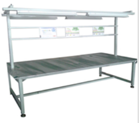檢修工作臺: 01 拉身1. 拉通整體支架采用40*40鐵方通 2. H架整體采用40*40鐵方通 02 工 作 臺 1.工作臺尺寸為2440×1220,采用18mm 夾層板(高密度)2. 表面鋪防靜電膠皮,T型膠包邊 03 照明 1. 燈架用整體支架40*40鐵方通 2. 燈管:雙邊光管帶燈罩 04 電路 1. 線槽采用1.2m冷板折彎成型,雙邊 2. 插座:三位穩(wěn)不落插座 05 工藝卡架 采用專用鋁型材,配A4硬膠套 06 控制系統(tǒng) 標準(獨立空開) 07 表面處理 噴粉電腦色 以上為雙邊生產(chǎn)線,每個工位標準寬度800MM |
