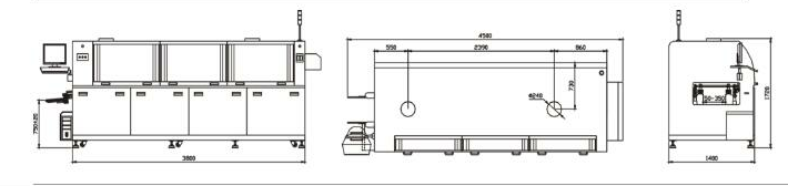 1.三段獨(dú)立的1.8米預(yù)熱區(qū),全熱風(fēng)預(yù)熱,帶射燈補(bǔ)償裝置,使PCB獲得好的焊接效果