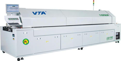 比較以上兩種回流溫度曲線模式,主要的不同是后者無高原結(jié)構(gòu)(即恒溫加熱區(qū))的溫度曲線部分。由于基板結(jié)構(gòu)及其元件吸熱性的差異,以及設(shè)備可控制加熱率的限制,在穿過回流爐的基板不同點(diǎn)溫度仍然會(huì)存在差異,借由一個(gè)減少溫度梯度的高原形式的平衡區(qū),在熱點(diǎn)溫度到焊錫溶點(diǎn)溫度以下時(shí),保持此溫度一段時(shí)間,則冷點(diǎn)溫度將有力趕上它,在每個(gè)元件達(dá)到相同溫度之后,另一個(gè)快溫升程序?qū)⑹乖仙椒逯禍囟?,這樣可有效避免局部生半田或局部高溫焦化的現(xiàn)象。